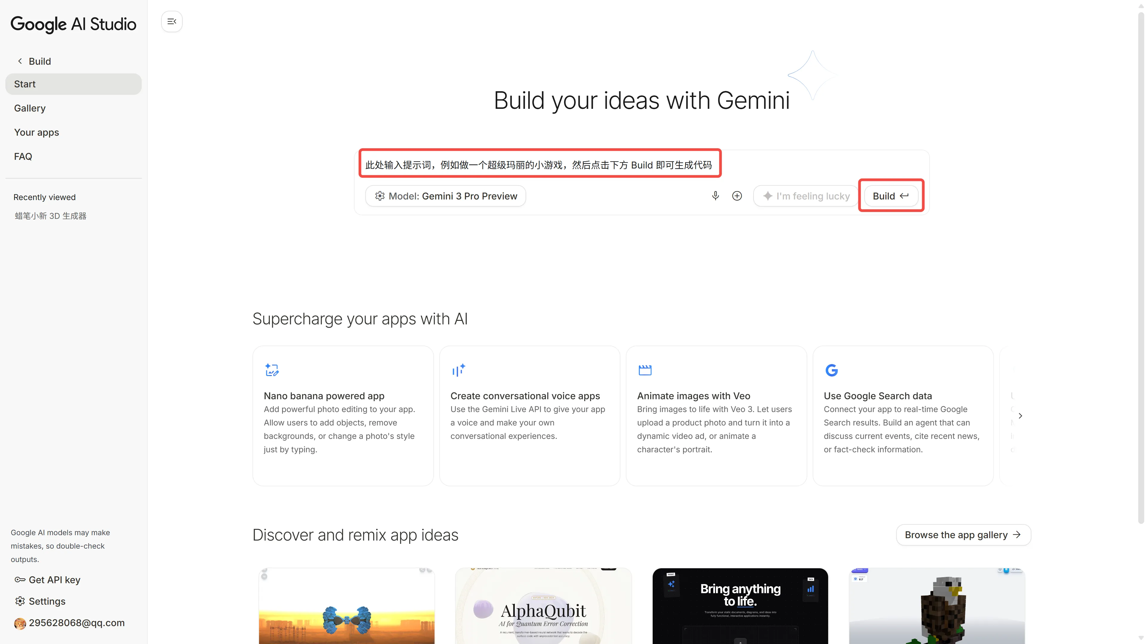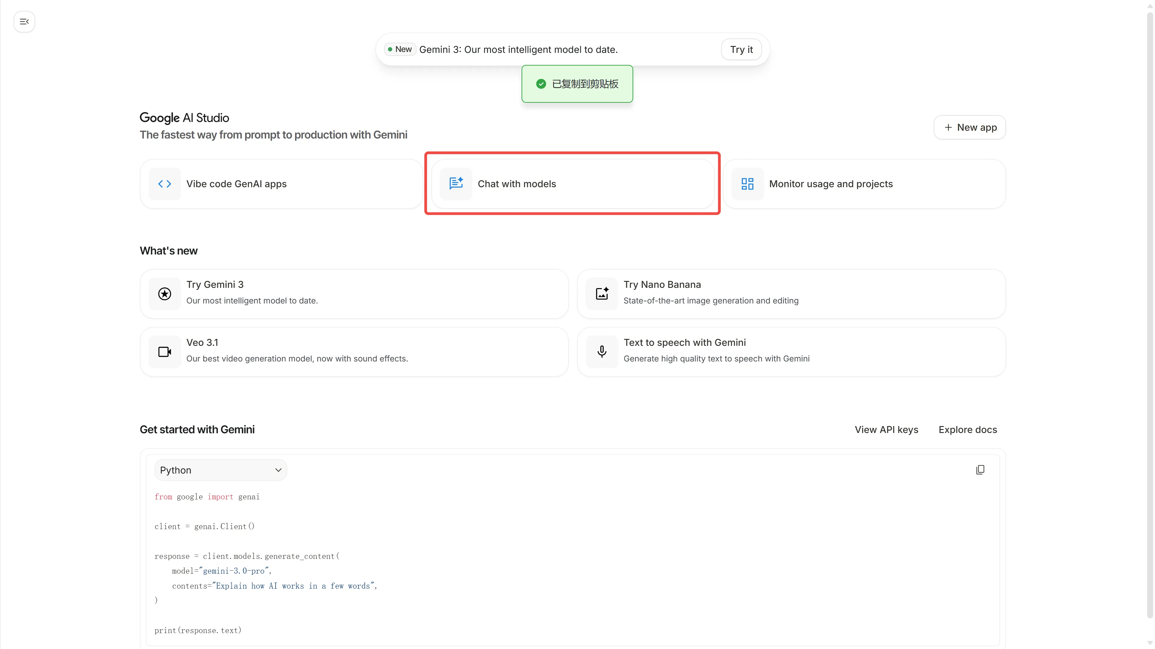 - 访问 AI Studio 官网:https://aistudio.google.com/